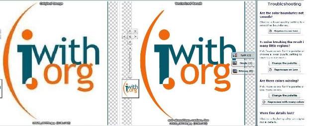 • Subscribe and upload an image. Then answer some simple questions about the image (what type of image it is, what colors you want in the result and such). At start, you are asked about the type of image: a picture, a too much or poorly pixelled logo, etc. Then you are asked about the colours and you are offered the most similar pantones or colours.